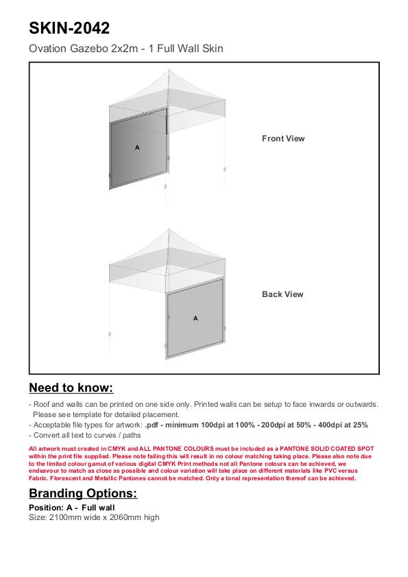Ovation Sublimated Gazebo 2m X 2m - Full-Wall (Excludes Hardware)