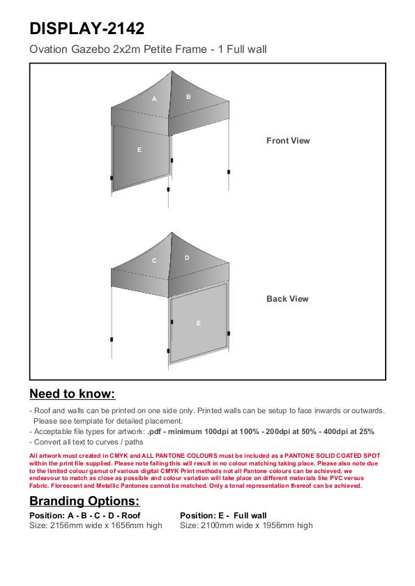 Ovation Sublimated Gazebo 2m X 2m Petite Frame - 1 Full Wall Skin