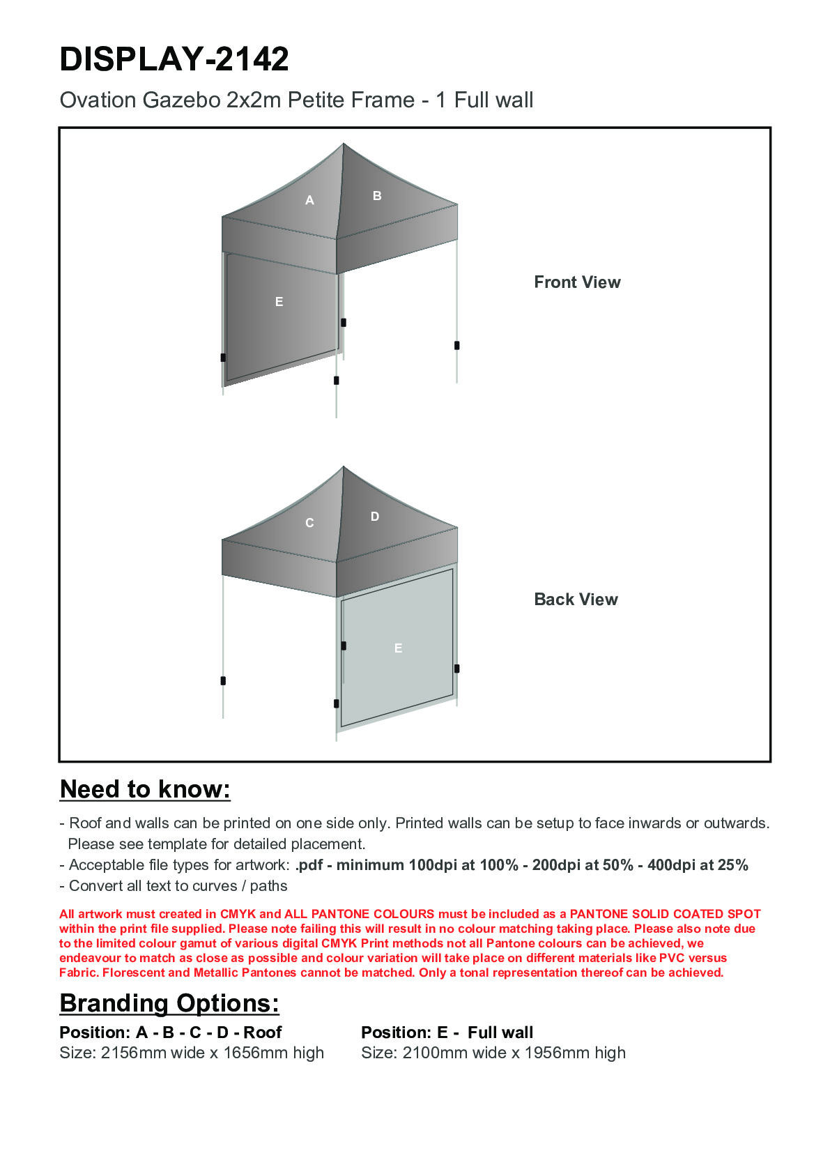 Ovation Sublimated Gazebo 2m X 2m Petite Frame - 1 Full Wall Skin