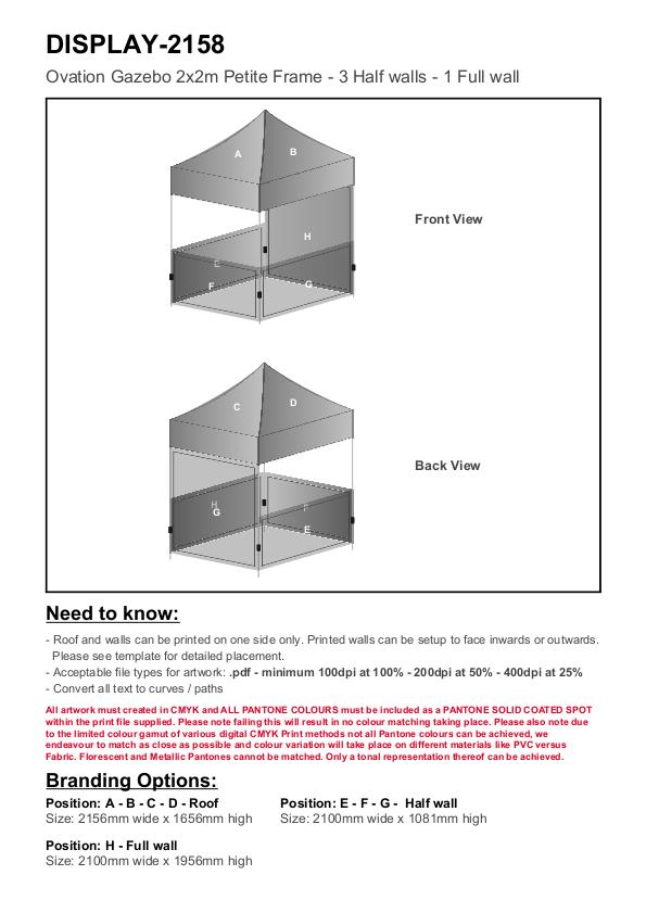 Ovation Sublimated Gazebo 2m X 2m Petite Frame - 3 Half-Wall Skins - 1 Full Wall Skin