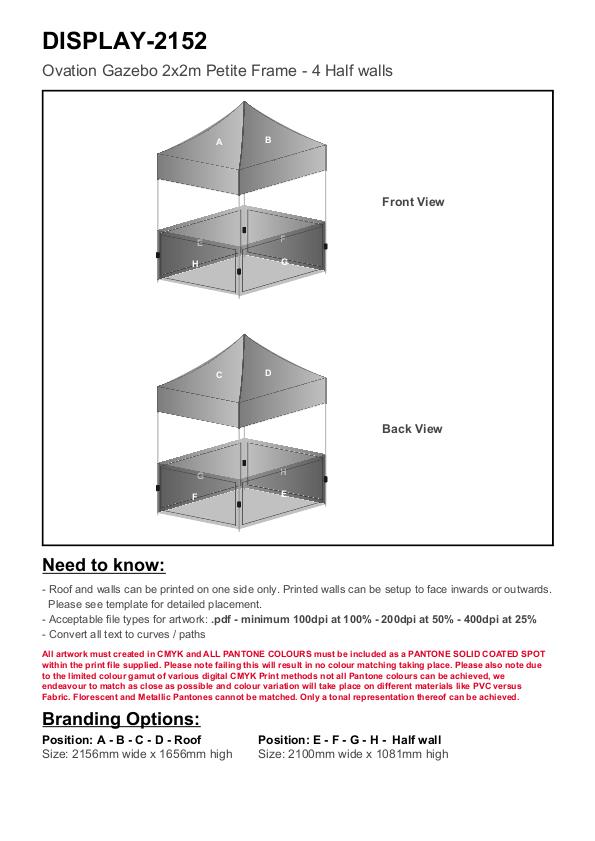 Ovation Sublimated Gazebo 2m X 2m Petite Frame - 4 Half-Wall Skins