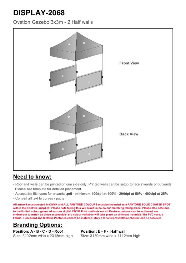 Ovation Sublimated Gazebo 3m X 3m - 2 Half-Wall Skins