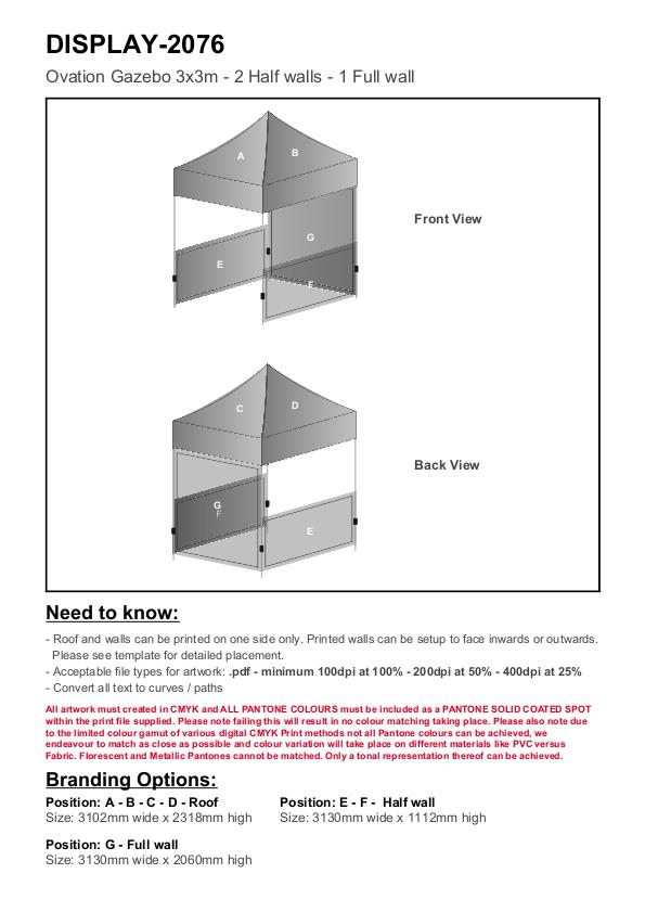 Ovation Sublimated Gazebo 3m X 3m - 2 Half-Wall Skins - 1 Full-Wall Skin