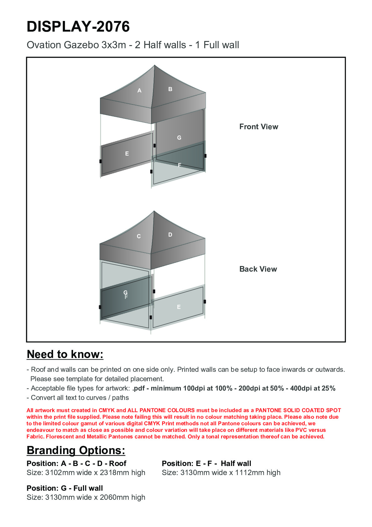 Ovation Sublimated Gazebo 3m X 3m - 2 Half-Wall Skins - 1 Full-Wall Skin