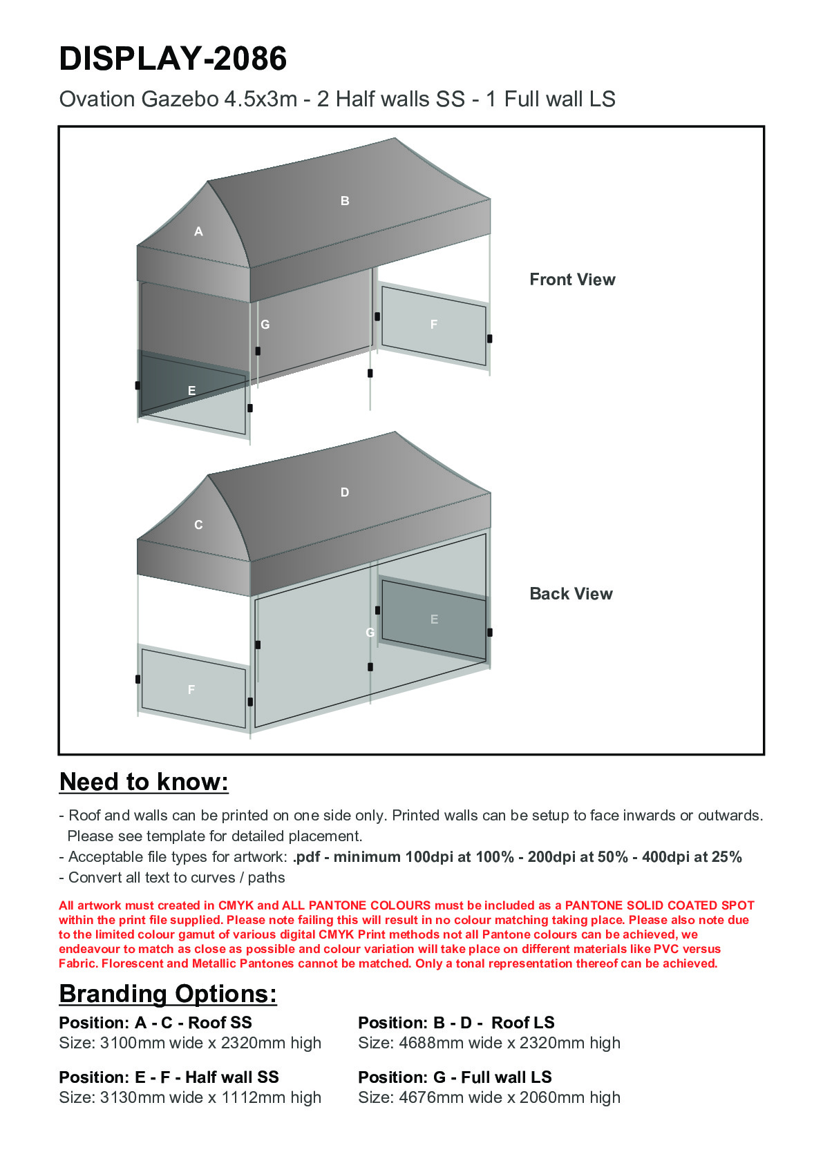 Ovation Sublimated Gazebo 4.5m X 3m - 1 Long Full-Wall Skin - 2 Short Half-Wall Skins
