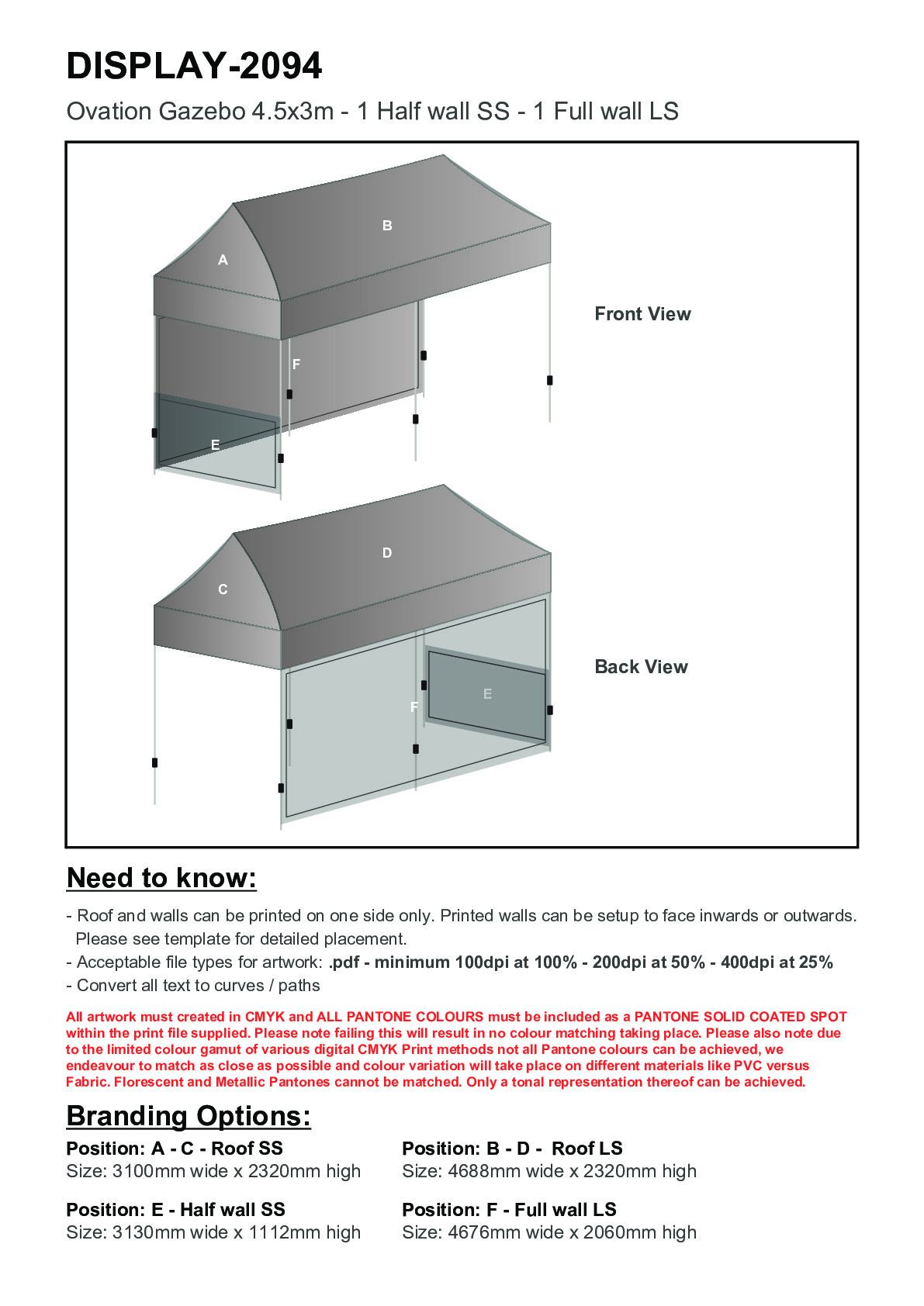 Ovation Sublimated Gazebo 4.5m X 3m - 1 Short Half-Wall Skin - 1 Long Full-Wall Skin