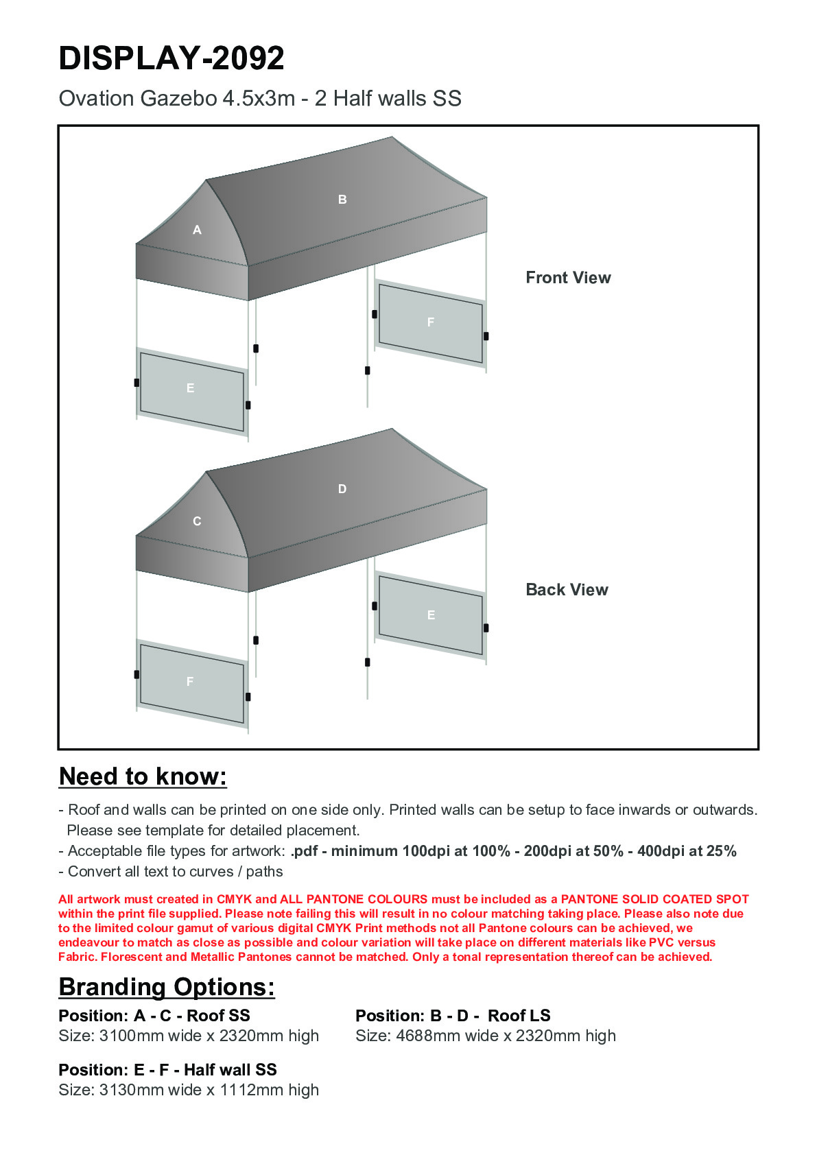 Ovation Sublimated Gazebo 4.5m X 3m - 2 Short Half-Wall Skins
