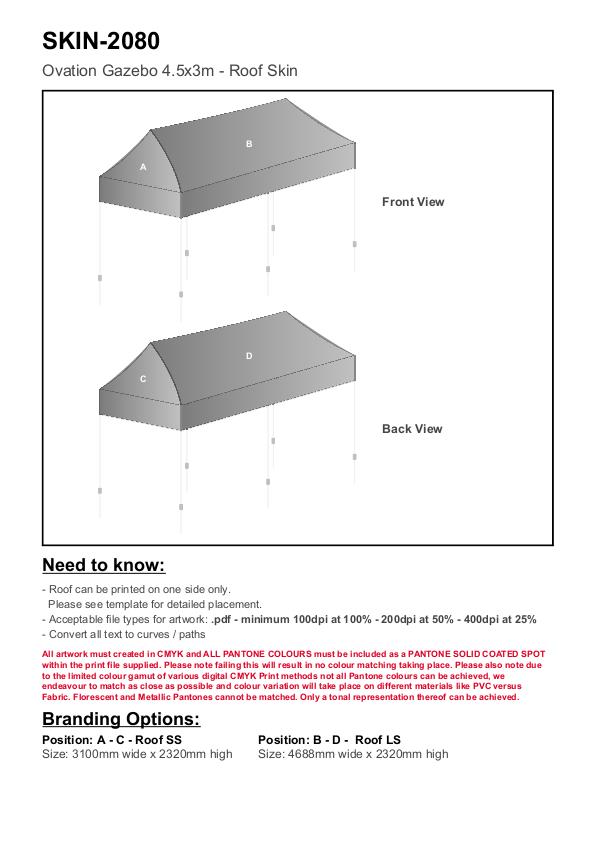 Ovation Sublimated Gazebo 4.5m X 3m - Roof (Excludes Hardware)
