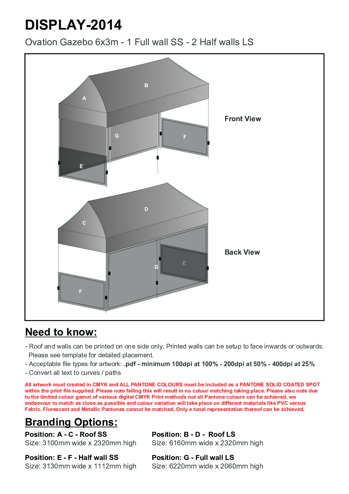 Ovation Sublimated Gazebo 6m X 3m - 1 Long Full-Wall Skin - 2 Short Half-Wall Skins