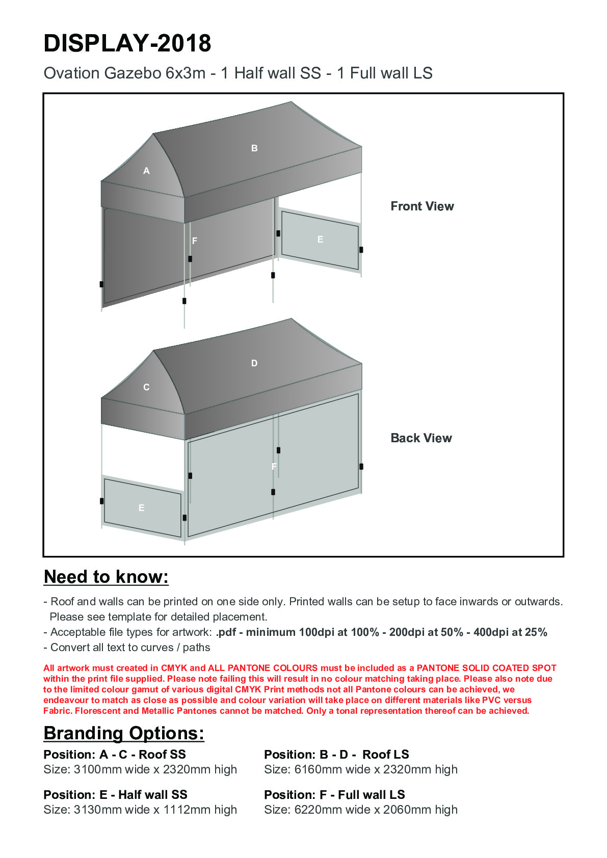 Ovation Sublimated Gazebo 6m X 3m - 1 Short Half-Wall Skin - 1 Long Full-Wall Skin