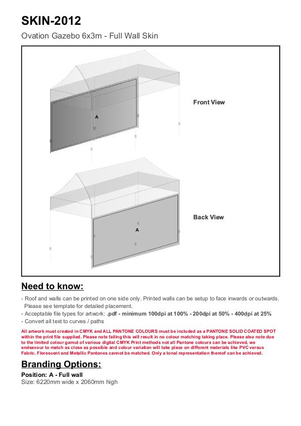 Ovation Sublimated Gazebo 6m X 3m - Long Side Full-Wall (Excludes Hardware)