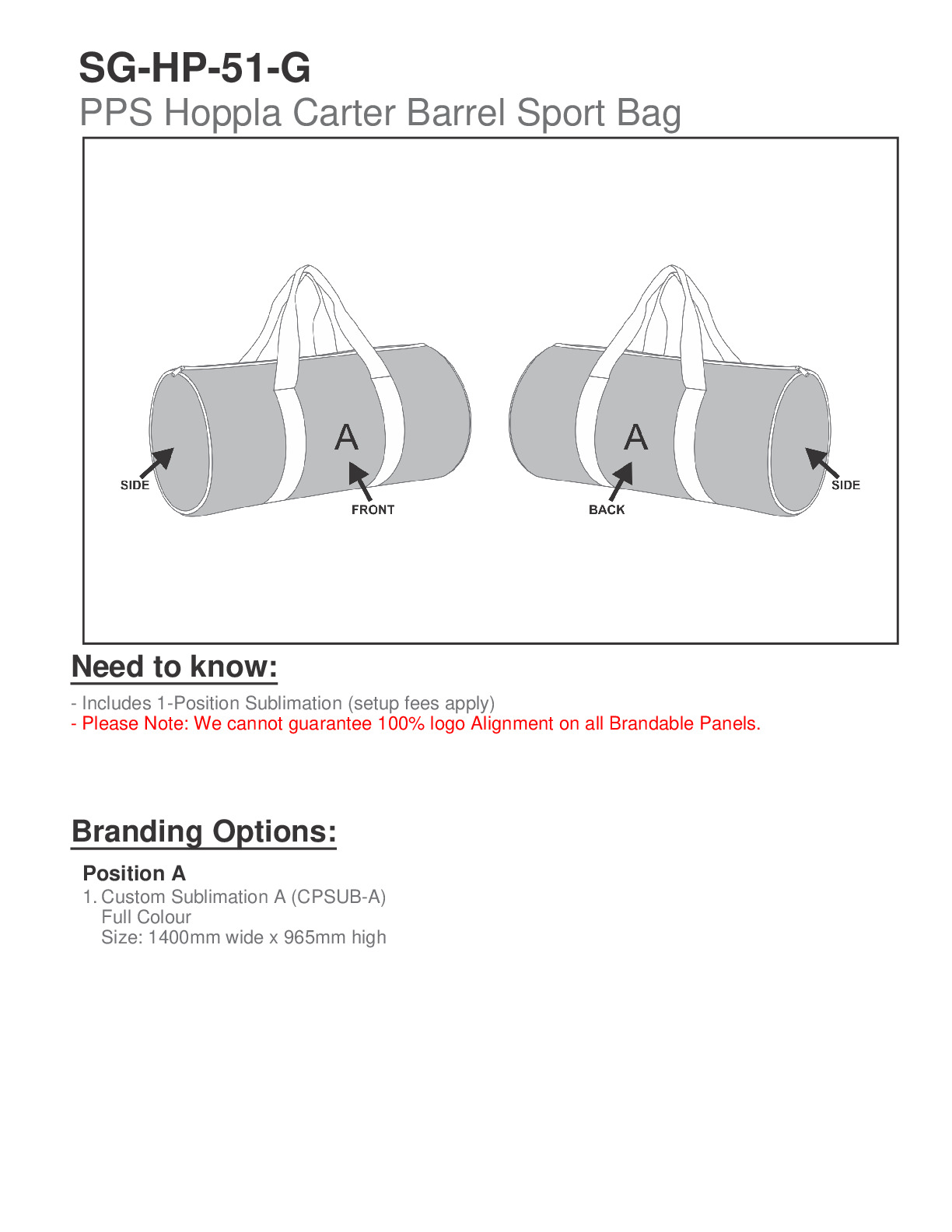 Pre-Production Sample Hoppla Carter Barrel Sport Bag