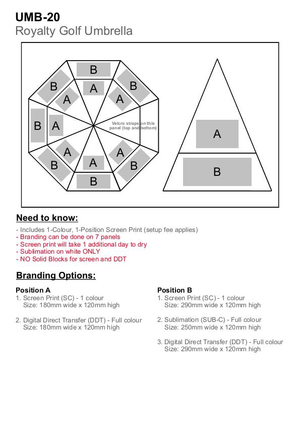 A helpful necessity come rain or sunshine. This umbrella is large enough for more than one person. Vented canopy for wind resistance. Fibreglass shaft for durability. Comfortable foam handle. Get your logo out there with great branding space. 8 panels. Available in 10 bright colours • 190T nylon: 127 (dia): fibreglass shaft : EVA foam handle • Includes colour co-ordinated 190T nylon pouch with carry strap ( not shown ). Sublimation branding available on white panels only.