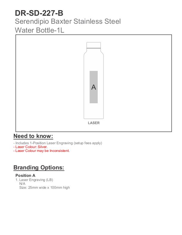 Serendipio Baxter Stainless Steel Water Bottle - 1 Litre
