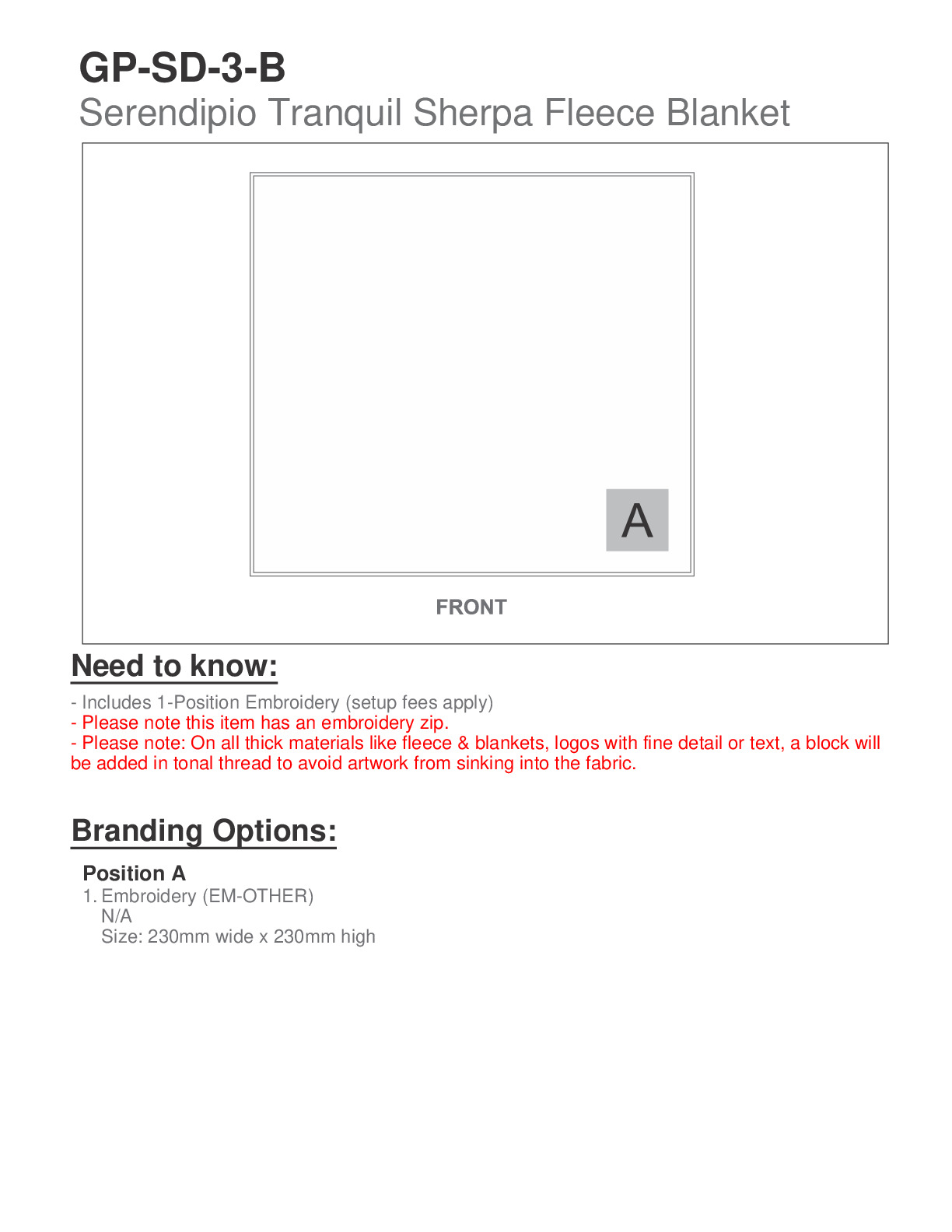 - double-layered blanket with a 40cm concealed zip for easy access branding