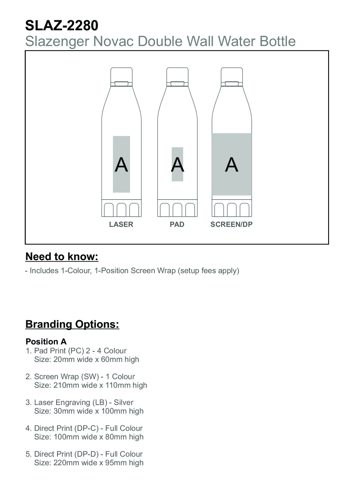 Slazenger Novac Stainless Steel Vacuum Water Bottle - 500ml