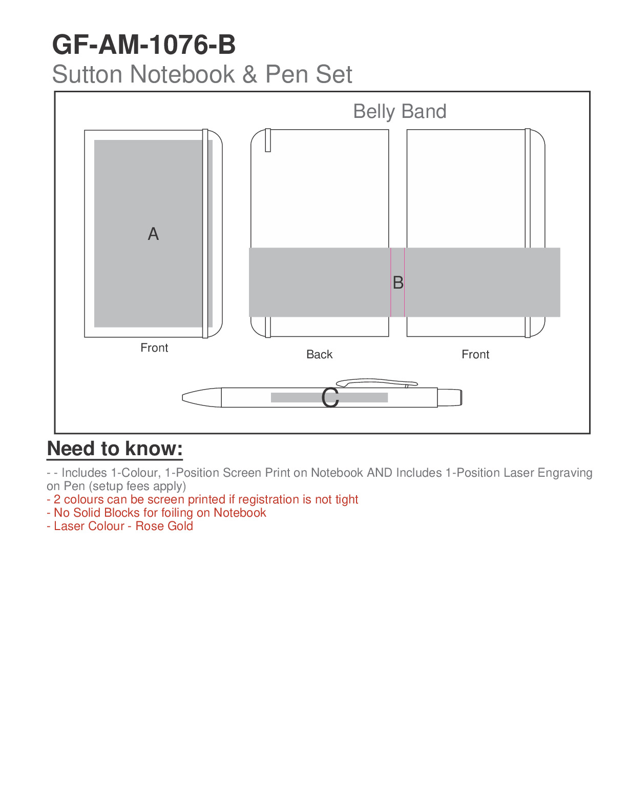 A black notebook and an aluminium ball pen are packaged together in a box which provides bright and clear exposure for your branding. The pen has a matte finish with a rose gold underlay, which matches the trims of the pen, and is exposed when your logo is lasered into the pen.The box has a firm cardboard base, and a transparent acetate lid.