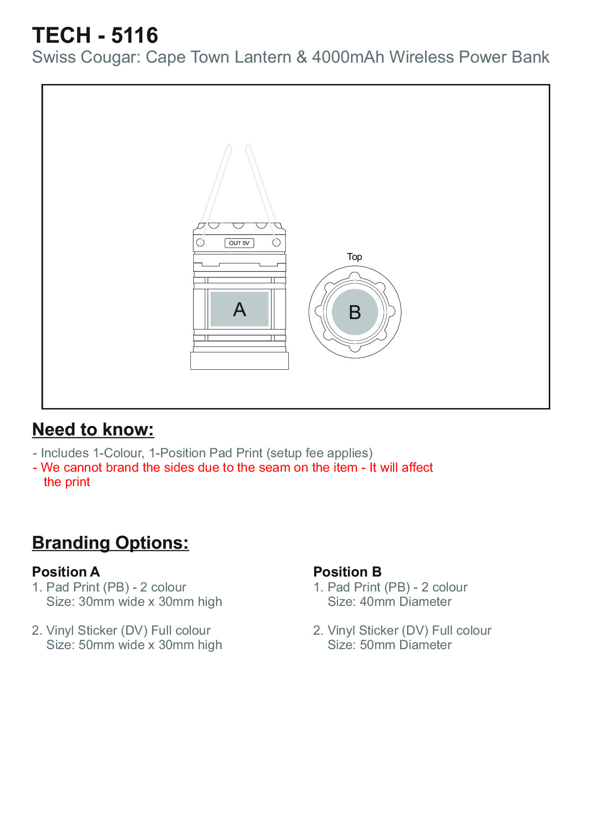 Swiss Cougar Cape Town Lantern & Wireless Charging Power Bank - 4,000mAh