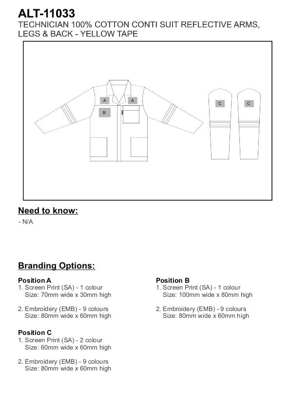 Technician 100% Cotton Conti Suit - Reflective Arms, Legs & Back - Yellow Tape