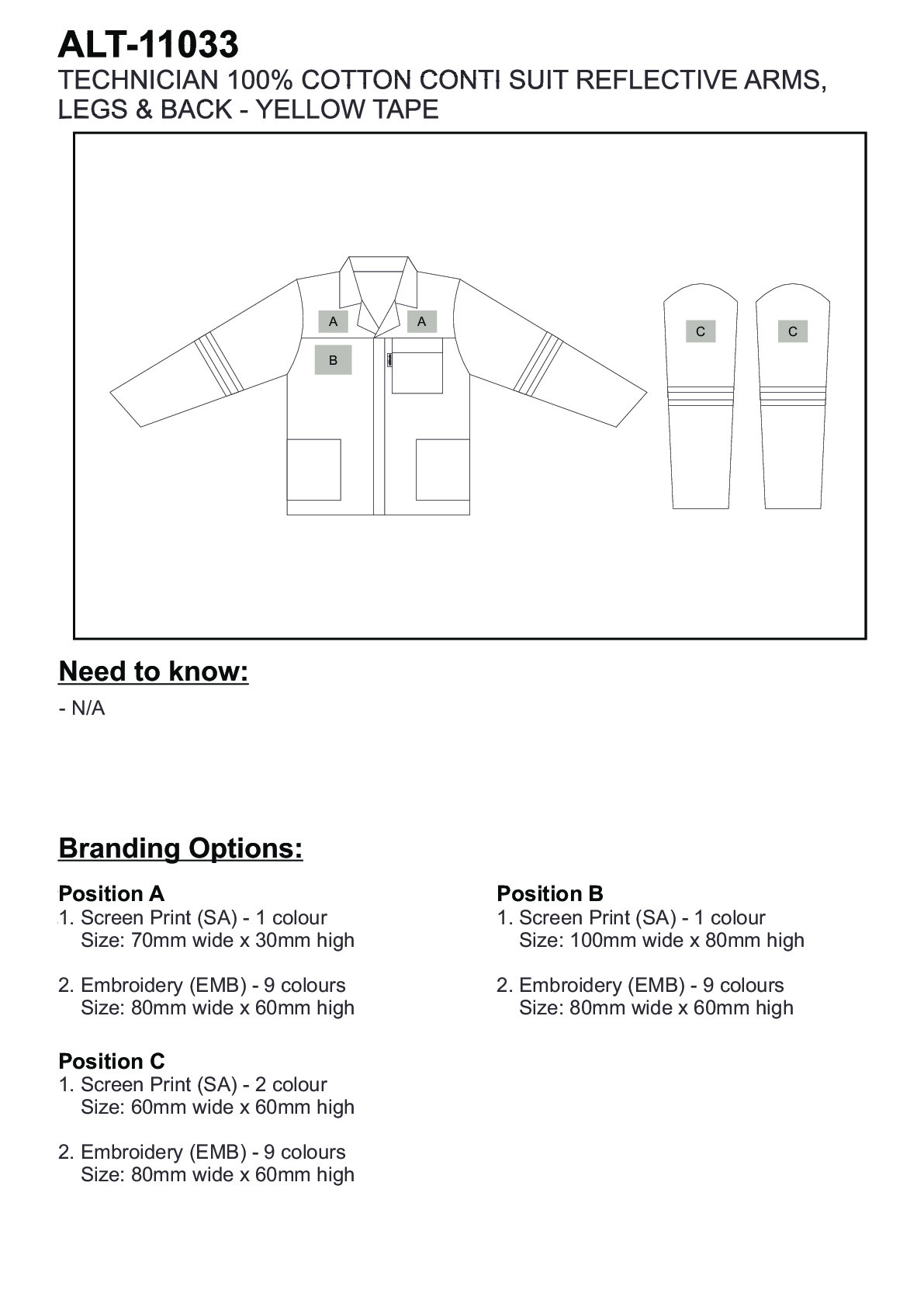 Technician 100% Cotton Conti Suit - Reflective Arms, Legs & Back - Yellow Tape