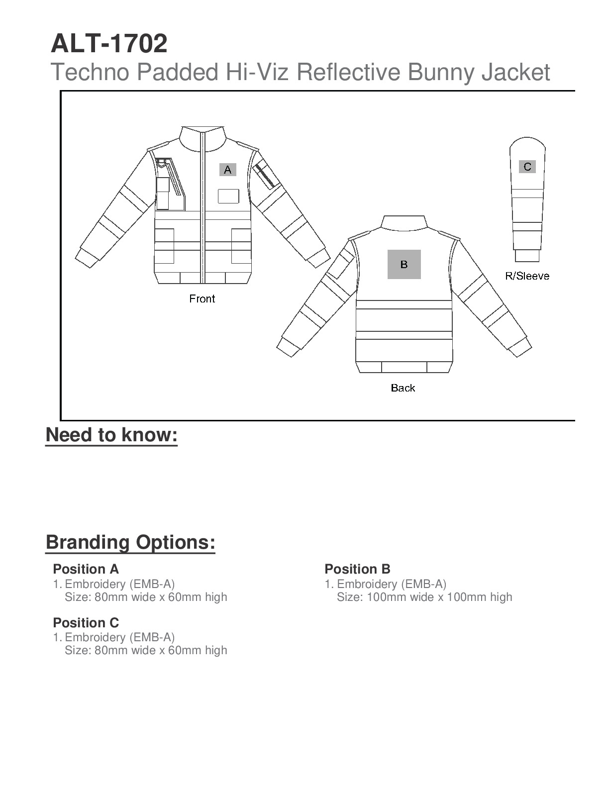 Techno Padded Hi-Viz Reflective Bunny Jacket