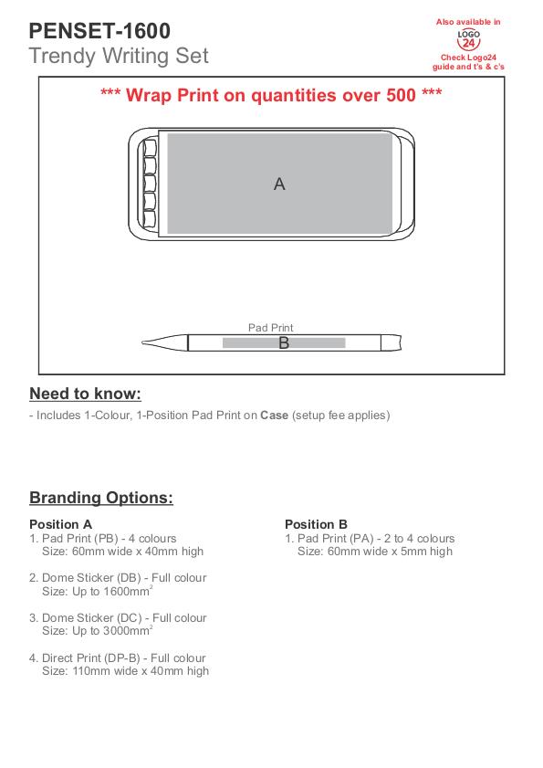 A great affordable promotional idea for any event. Set features a pen with red ink, black ink, pencil, yellow and orange highlighter • ABS: 14 ( l ) x 5.7 ( w ) x 0.8 ( h )