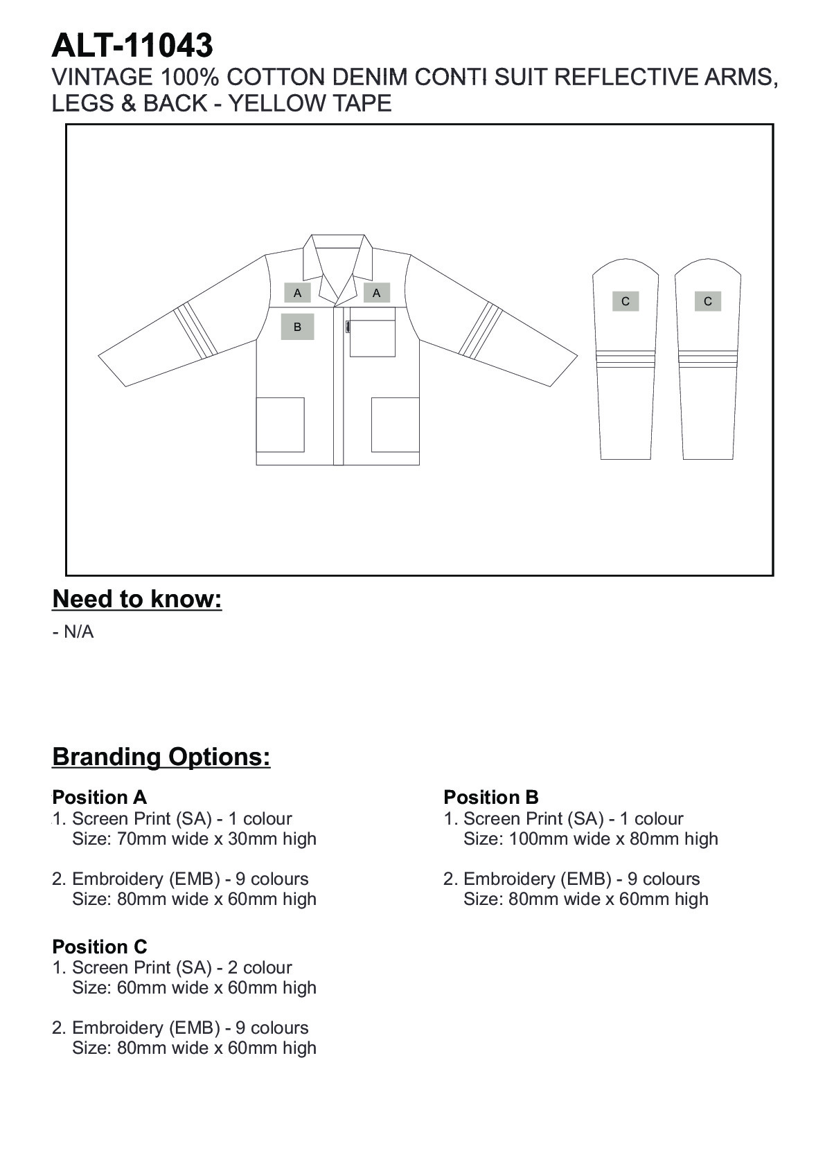 Vintage 100% Cotton Denim Conti Suit - Reflective Arms, Legs & Back - Yellow Tape